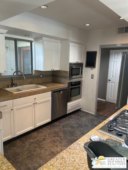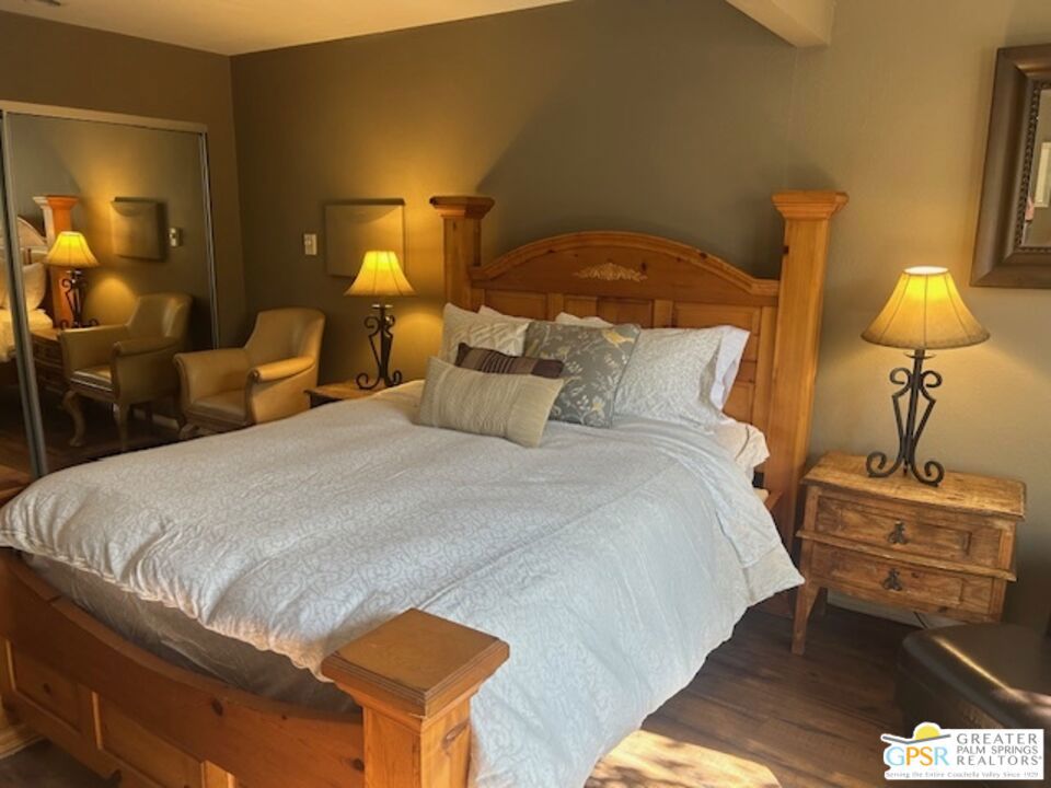 Moving to Palm Springs, but not ready to buy yet? Already live here, but looking for an upgrade? Then rent this beautiful home which sits at the end of a quiet cul-de-sac yet close to downtown. The back yard offers total privacy with an outstanding view of the mountains! Upgraded appliances with top of the line Viking refrigerator; granite countertops and spacious rooms. Outdoor bar-be-que and covered patio perfect for entertaining Palm Springs style! Fully furnished down to the cups, saucers and dish towels. All you need to bring is your toothbrush! It is also offered unfurnished. Your choice. Landlord will pay for trash, and weekly pool and garden service. Tenant pays utilities directly. This home is not for sale and only a long term lease will be considered. This is privacy in paradise. Showings by appointment only.
